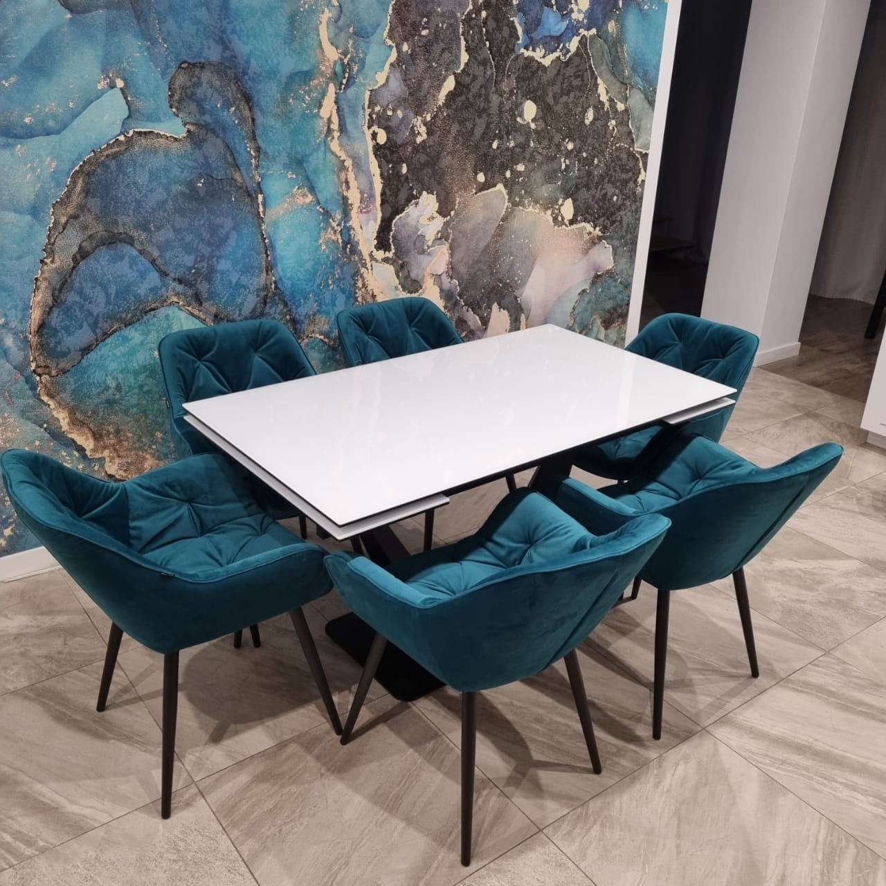 Выбирали стол с керамической столешницей для гостиной-столовой в современном стиле. Важно было, чтобы мебель выглядела минималистично, но при этом дорого. Этот керамический стол и стулья полностью соответствуют ожиданиям.