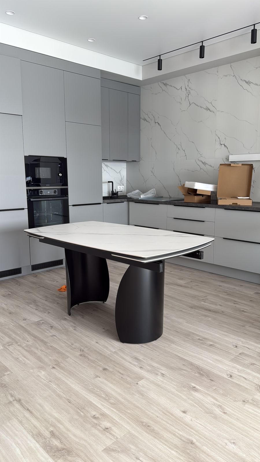 Выбирали керамический стол от производителя, потому что искали действительно качественную мебель, а не массовый вариант из магазина. Результатом довольны — стол из керамики смотрится дорого и отлично дополняет интерьер нашей кухни-гостиной.